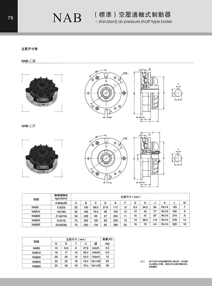 空壓通軸式制動器